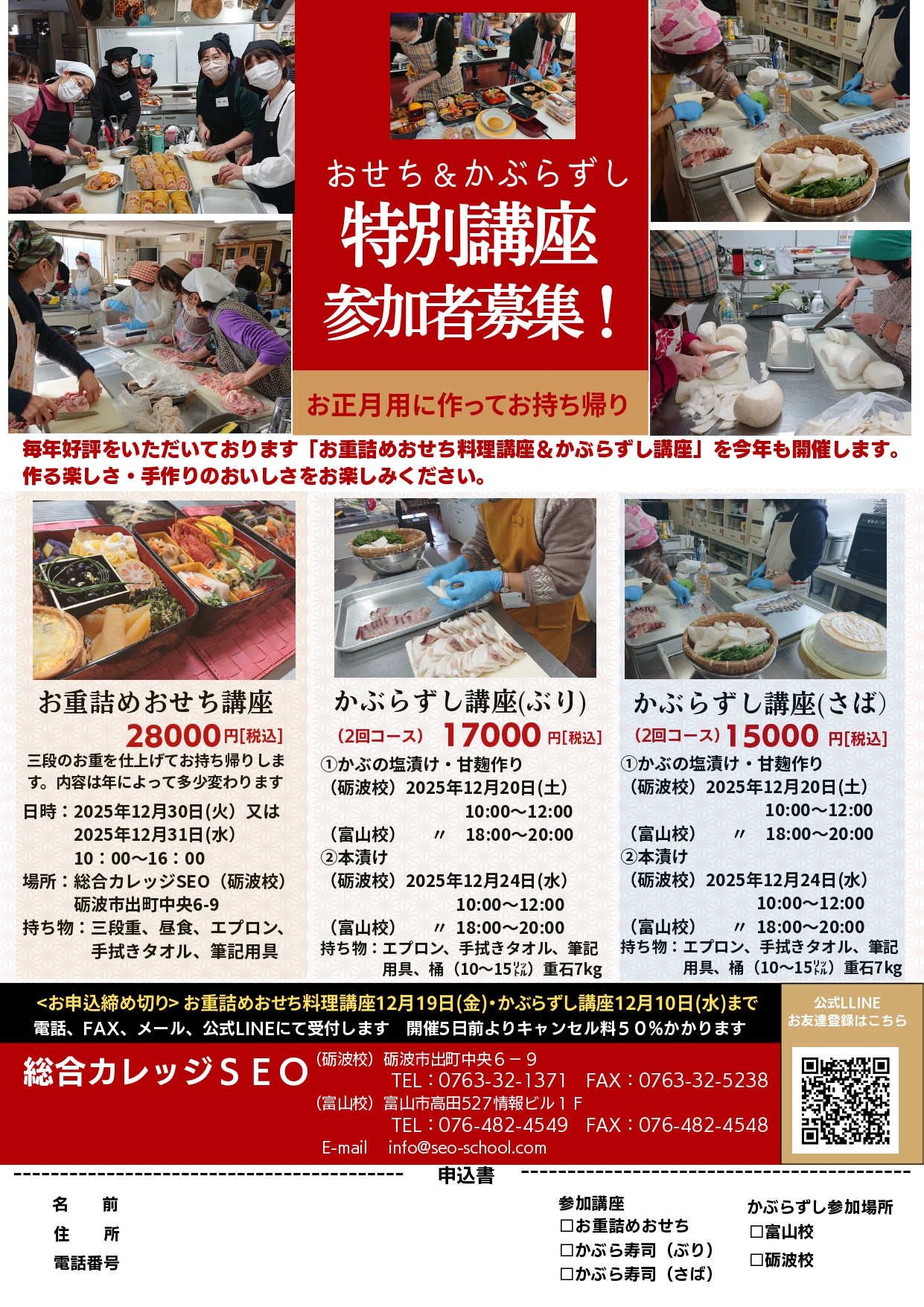 > お重詰めおせち料理講座&かぶらずし講座 参加者募集
