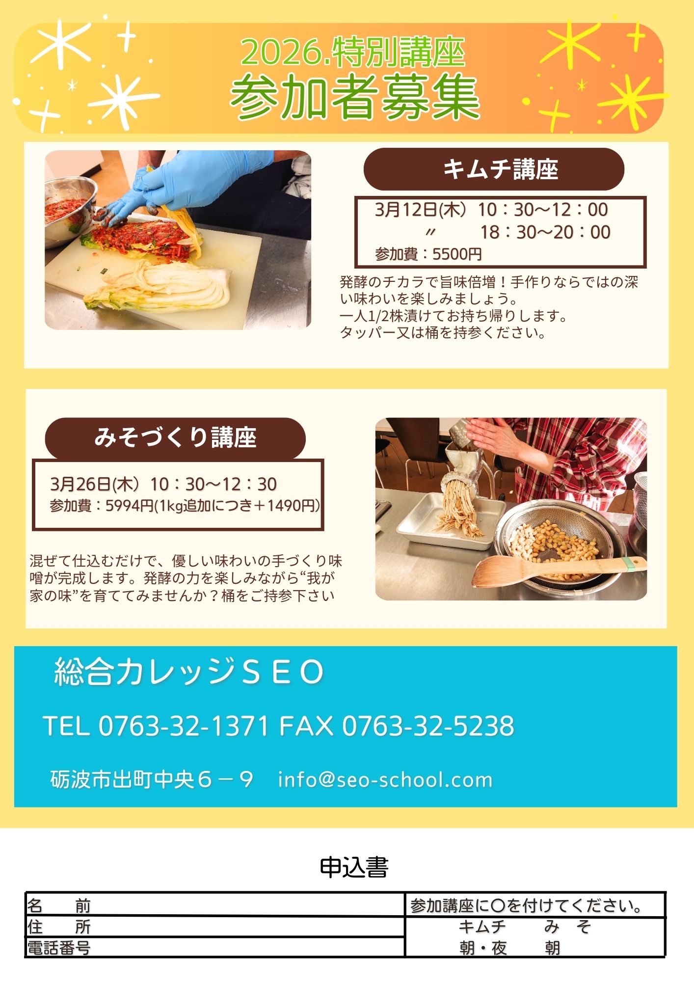 > キムチづくり、味噌づくり(砺波校)