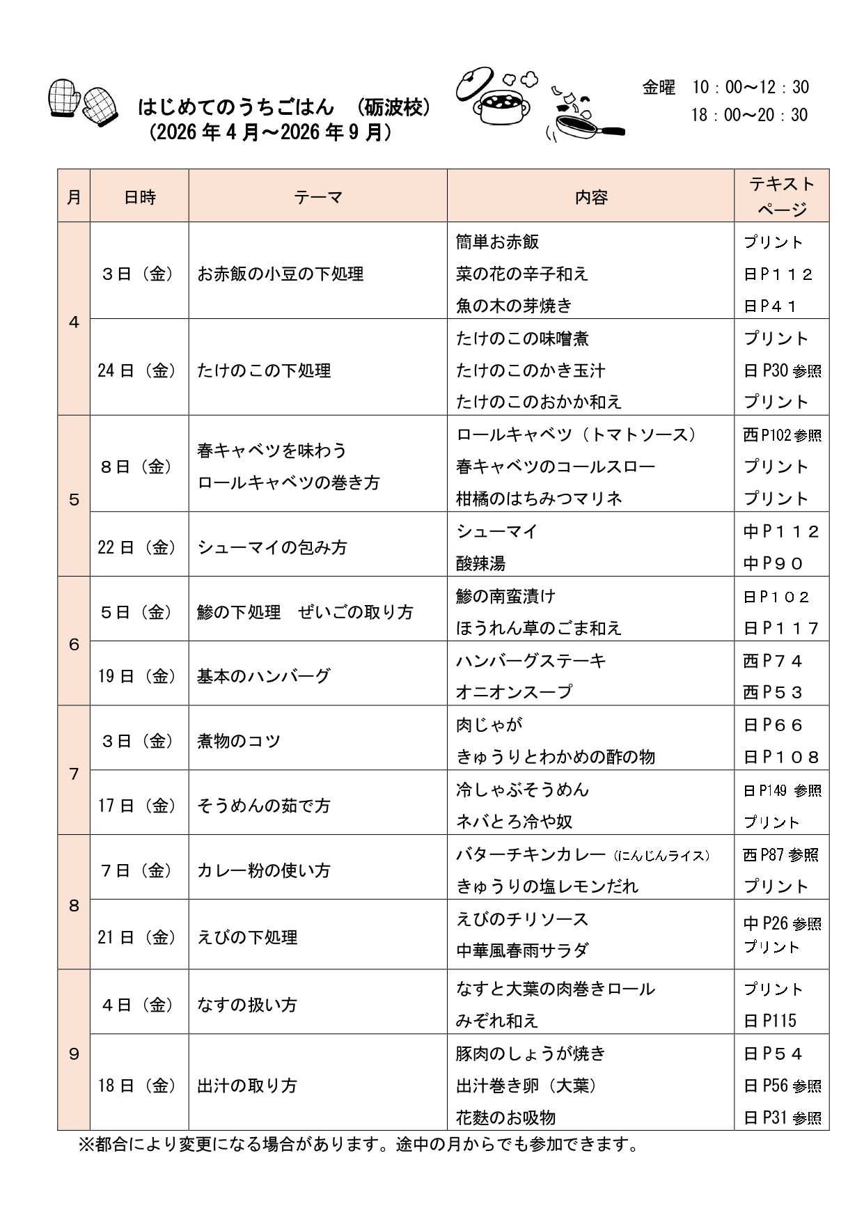 はじめてのうちごはん(砺波校)2026.4~9