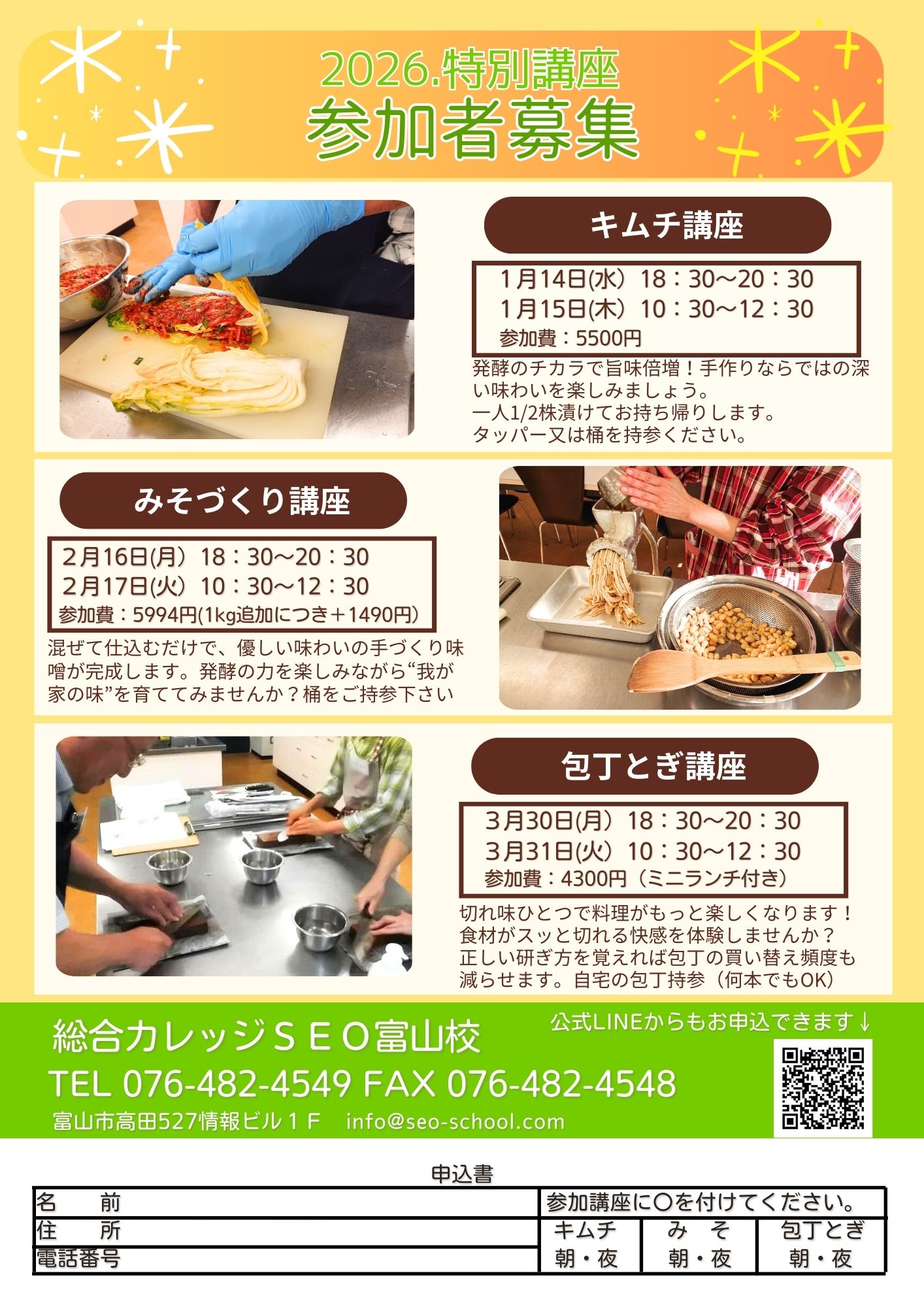 みそ・キムチづくり講座、包丁とぎ講座